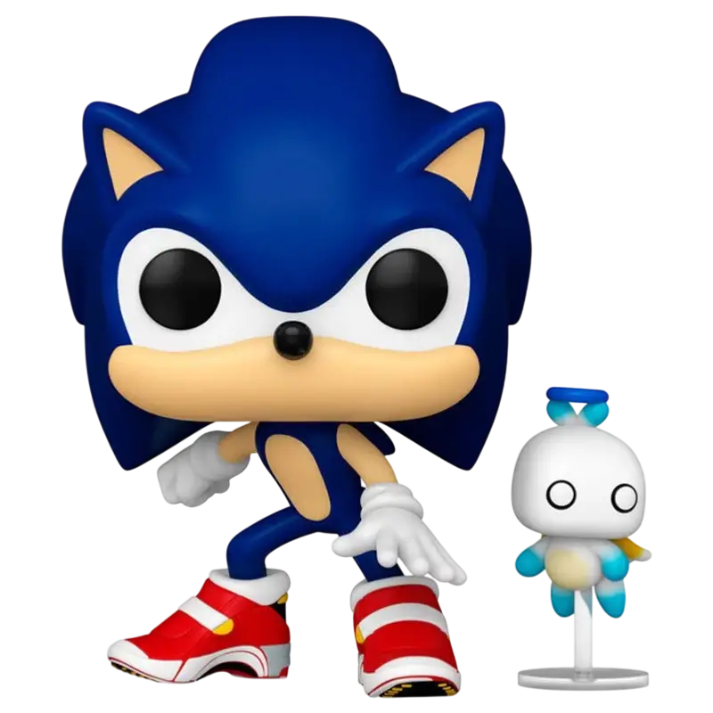 Este modelo apresenta Sonic ao lado de um Hero Chao, uma das adoráveis criaturas presentes na série, conhecidas pelo seu papel nos modos de criação e personalização nos jogos da franquia.