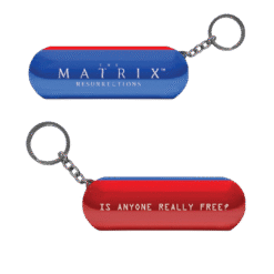 - Pílula Vermelha e Azul: O porta-chaves detalhadas das duas pílulas, a vermelha e a azul, simbolizando a escolha entre a verdade desconfortável e a ignorância confortável.