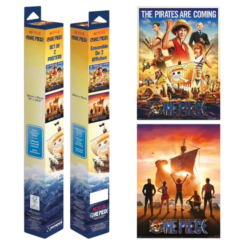 Estes posters One Piece (Live Action) é uma verdadeira celebração visual da famosa série de aventura e fantasia. Cada pôster captura o carisma vibrante dos personagens icónicos da obra, incluindo Luffy, Nami, Zoro, Sanji e Usopp, com interpretações detalhadas e fielmente adaptadas do anime para o mundo real. As cores são intensas e vibrantes, com efeitos de iluminação e detalhes impressionantes que destacam as personalidades e habilidades de cada personagem, transportando os fãs para o universo dinâmico e audacioso de One Piece. Em cada pôster, os cenários marítimos e piratas são ricamente explorados, evocando a sensação de mistério e liberdade que caracteriza esta aventura épica pelos mares. Este conjunto é perfeito tanto para os fãs que já conhecem o anime e o manga, como para os novos admiradores da versão live-action, sendo uma peça de coleção indispensável que capta a essência do espírito aventureiro e rebelde de One Piece.