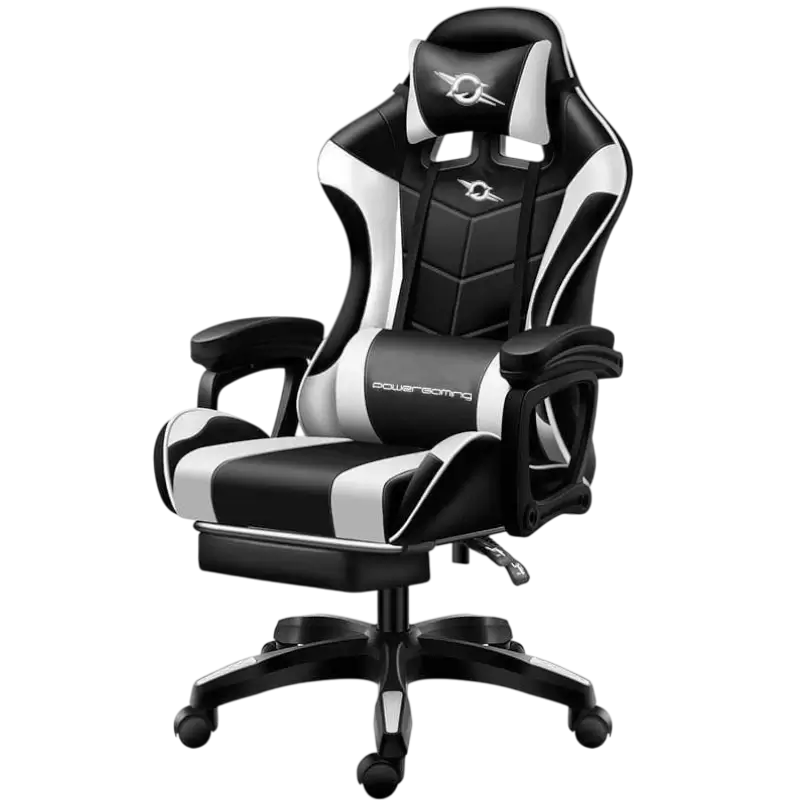 A cadeira Power Gaming 813 com Bluetooth e Massagem é uma cadeira de design ergonômico e desportivo, ideal para sessões prolongadas de jogos, trabalho ou estudo. É revestida com couro sintético de alta qualidade e fácil de limpar, com detalhes em preto e branco que conferem um estilo moderno. Possui um encosto ajustável com inclinação até 155º, apoio lombar e para a cabeça removíveis, além de braços ajustáveis.