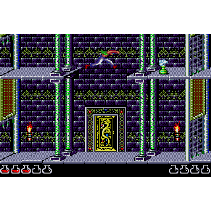 O protagonista deve evitar armadilhas mortais, resolver alguns quebra-cabeças ambientais e de salto simples (como pisar em placas de pressão para levantar portas levadiças) e se envolver em lutas de espada com os guardas. O personagem do jogador tem uma quantidade infinita de vidas, mas deve reiniciar no início de um nível cada vez que morrer e deve completar o jogo em uma hora. O herói começa com três unidades de saúde, que podem ser reabastecidas com pequenas poções de saúde ou aumentadas permanentemente com grandes potes.