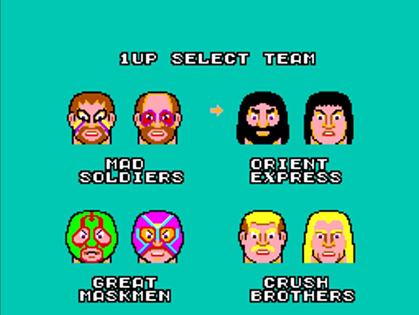Pro Wrestling é um jogo de luta profissional para equipes de tag, onde se pode escolher entre quatro equipes de tag para competir. Essas equipes de tag são os soldados loucos, o Orient Express, os grandes homens-máscara e os irmãos Crush e todos têm algo a provar. Cada lutador tem seus próprios movimentos especiais, variando de pontas de joelho e batidas corporais a bundas voadoras. Os soldados loucos e os grandes maskmen também podem usar cadeiras de metal para acertar seus oponentes fora do ringue, enquanto o Orient Express e os Crush Brothers têm a capacidade de subir na curva e lançando golpes prejudiciais aos seus oponentes. Cada lutador também pode ricochetear nas cordas para lançar um ataque em execução. Quando um lutador está com pouca saúde, ele pode marcar seu companheiro de equipe para continuar a partida.