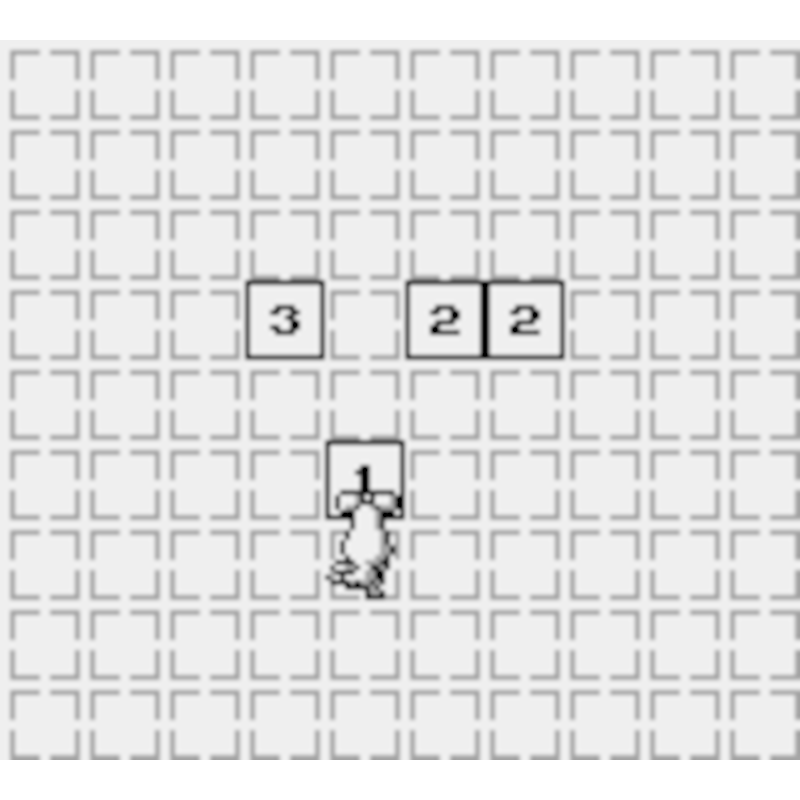Para fazer isso, o mouse deve subir em uma pilha e empurrar uma pilha vizinha mais alta para que as peças caiam, até que não haja mais peças empilhadas umas sobre as outras. Muitas vezes, as pilhas não são adjacentes umas às outras, o que força o mouse a empurrar uma peça próxima à pilha para ter algo em que se apoiar. Como o mouse é muito fraco, ele só consegue mover uma única peça. Isso exige muito malabarismo, pois para mover uma pilha de três peças (representadas por um 3 em um quadrado), é necessário mover uma única peça ao lado de uma pilha de duas peças e, em seguida, mover outra peça para o outro lado da pilha pequena e empurre a peça mais alta da pilha sobre a peça única para criar uma pilha de duas ao lado da pilha de três. Se houver uma distância maior que um ou dois quadrados entre as pilhas, isso torna a tarefa difícil e requer muito planejamento, o que coloca este jogo direto no antigo estilo de quebra-cabeças japoneses iniciado por Sokoban.