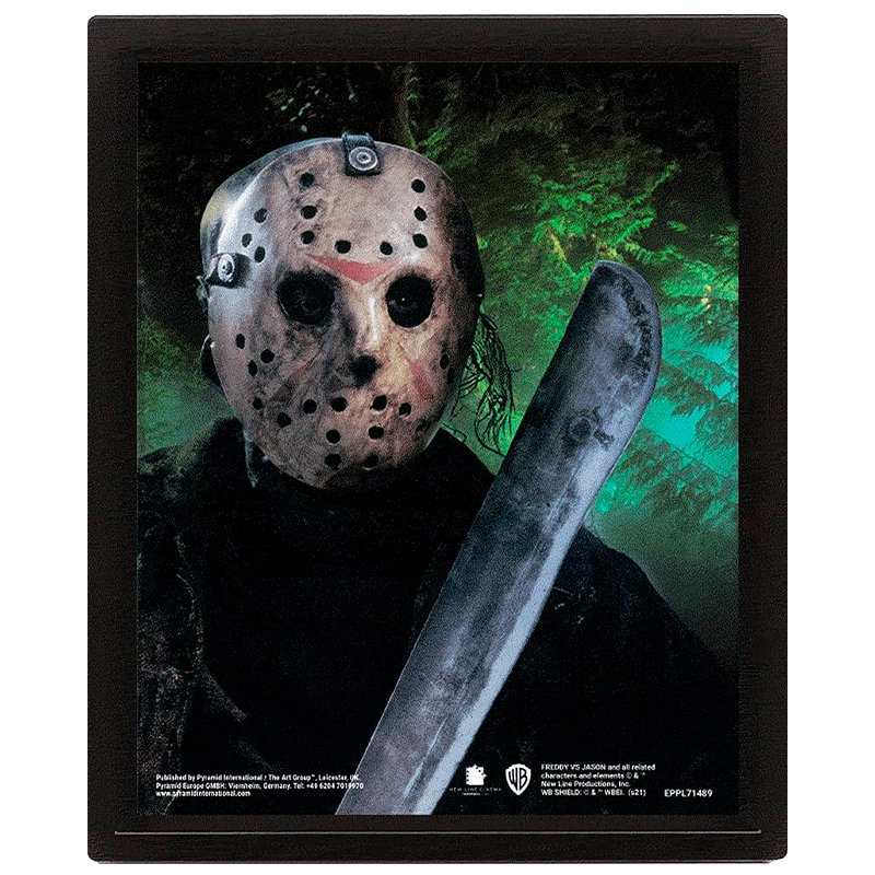 Se você está procurando uma peça de arte que vai assustar seus amigos e familiares, o quadro lenticulado Jason Voorhees é a escolha perfeita para você.