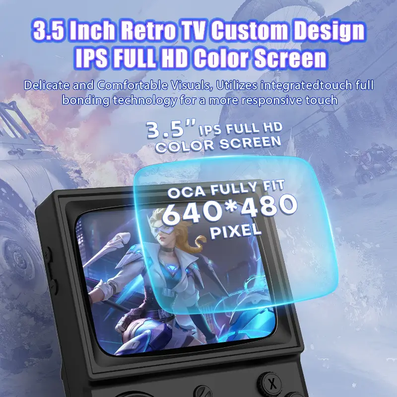 R36T RETRO TV é uma das consolas portáteis mais originais e nostálgicas do mercado, criada especialmente para os amantes dos videojogos clássicos que querem reviver a era dourada do gaming com estilo. Inspirada no visual das televisões CRT antigas, apresenta um ecrã curvado de 3.5 polegadas com tecnologia IPS e resolução 640×480, que oferece cores vivas, ângulos de visão amplos e um efeito visual retro que imita na perfeição a sensação de jogar numa TV antiga. A consola vem carregada com mais de 18.000 jogos organizados por plataformas, incluindo Game Boy, GBA, SNES, Mega Drive, PS1, Neo Geo, Arcade e muito mais, tudo pronto a jogar sem configurações complicadas.