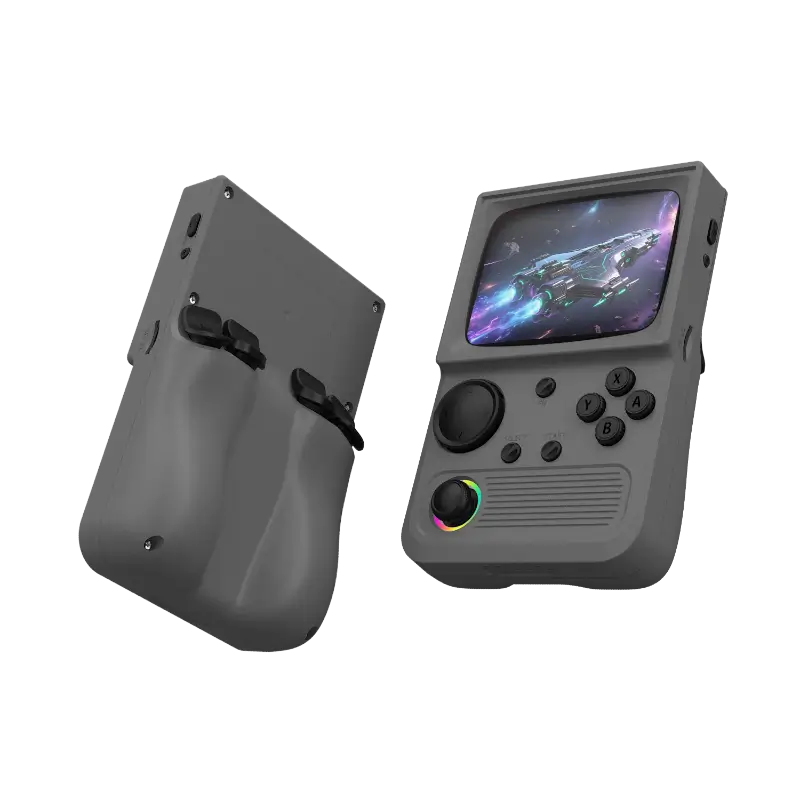 Equipada com o processador Rockchip RK3326 e 1GB de RAM, garante emulação fluida na maioria dos sistemas clássicos, mantendo o equilíbrio entre desempenho e portabilidade. A bateria de 3000 mAh oferece uma autonomia que pode chegar às 6–8 horas de jogo contínuo, ideal para viagens, pausas no trabalho ou momentos de relaxamento. O seu joystick iluminado com RGB dá um toque moderno e personalizável, enquanto os botões bem distribuídos garantem conforto mesmo nas sessões mais longas.
