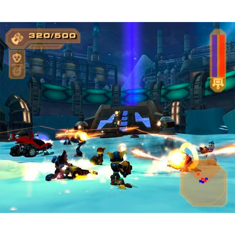 Ratchet & Clank 3: Up Your Arsenal é um jogo de plataforma 3D de ação e aventura que te coloca no papel de Ratchet, um lombax caçador de recompensas, e Clank, um robô mecânico.