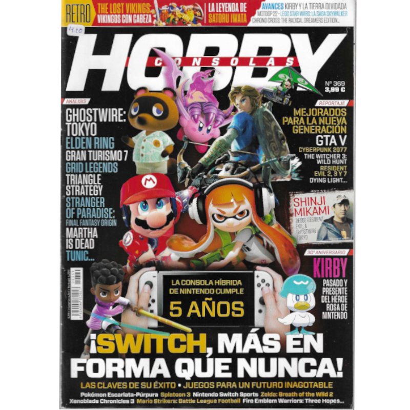 A Revista Hobby Consolas N369, publicada em abril de 2022, celebra os 5 anos do console Nintendo Switch, destacando os marcos desse período e os lançamentos planejados para 2022, como Pokémon Púrpura-Escarlata e Zelda: Breath of the Wild 2. Além disso, a revista traz análises de grandes títulos, como Gran Turismo 7, Elden Ring, Ghostwire Tokyo e Tunic.