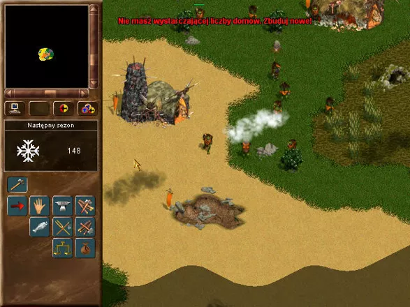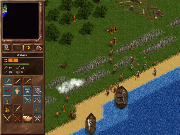 Como nos jogos RTS tradicionais, você começa construindo seu assentamento. Edifícios para cada corrida incluem habitações, ferreiros e armazéns. Cada raça tem apenas três tipos de unidades, machos, fêmeas e druidas. Machos e fêmeas reunirão automaticamente os recursos necessários para iniciar a construção de edifícios. Mas você precisa coletar e armazenar comida suficiente. Você consegue comida trabalhando nos campos, coletando frutas, pescando, caçando e mantendo a chaleira. O jogo apresenta mudanças de estação e comida suficiente é necessária para sobreviver a invernos rigorosos.