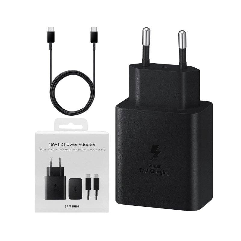 O design compacto e elegante do carregador Samsung Fast Charge 15W Type-C o torna fácil de transportar e guardar. Além disso, o cabo USB-C incluído é longo o suficiente para que você possa carregar seus dispositivos confortavelmente mesmo quando estiver longe da tomada.