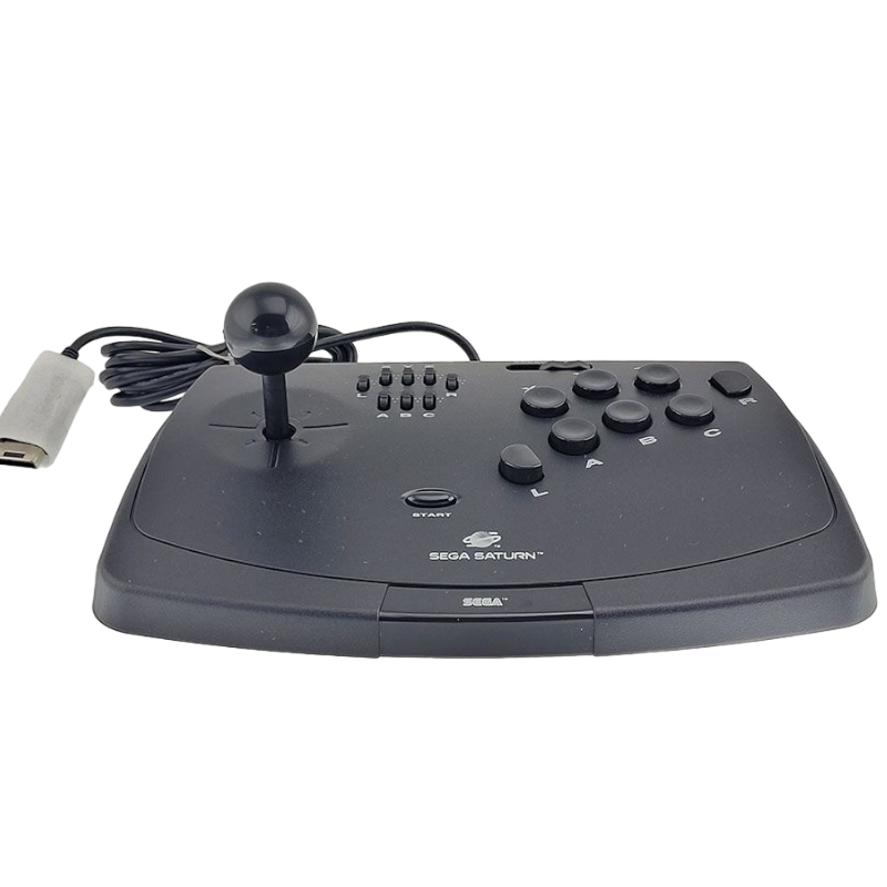 O Sega Arcade Joystick Virtua Stick SS lançado para a Sega Saturn – o primeiro oficialmente licenciado construído pela Sega.