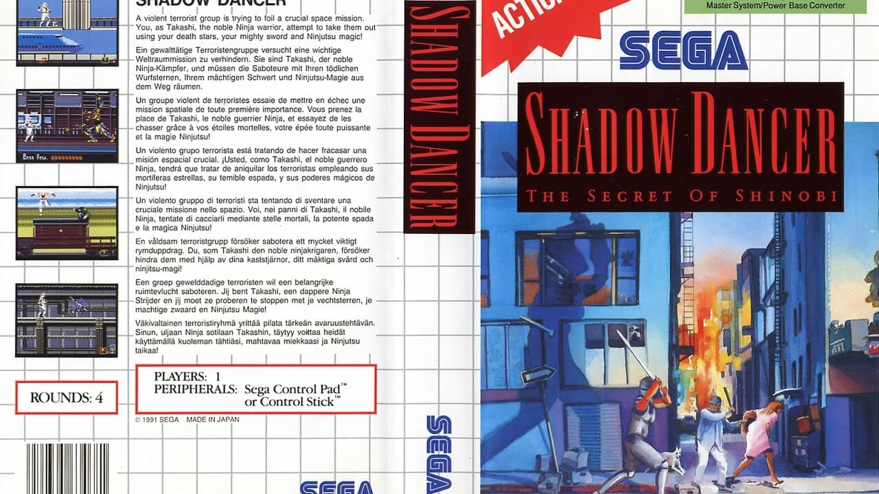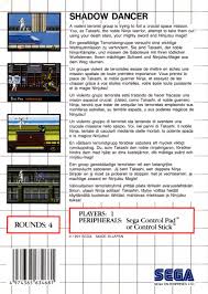 Shadow Dancer é um jogo para um jogador em que se controla Shinobi. Com a ajuda do seu cão, deve matar os seus inimigos enquanto se aventura através de locais como aeroportos, caminhos-de-ferro, cascatas, esgotos, e muito mais. Além disso, deve encontrar e desarmar várias bombas ao longo do caminho antes de sair de cada uma. Também tem a opção de usar magia contra inimigos, que pode consistir em tornados ou bolas de fogo.