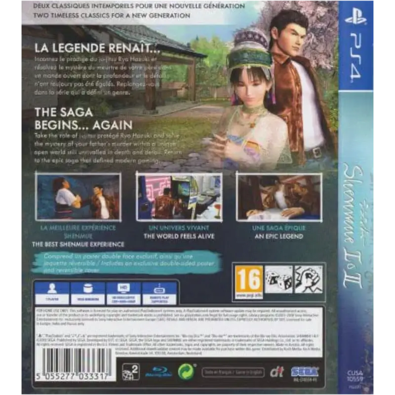 Shenmue I & II para PlayStation 4 reúne os dois clássicos remasterizados da icónica saga Shenmue numa só edição, trazendo uma experiência de ação e aventura em mundo aberto com uma narrativa profunda e envolvente. Neste título, encarnas Ryo Hazuki, um jovem praticante de jiu-jitsu que parte numa jornada de vingança após a morte do seu pai, explorando cidades detalhadas do Japão e de Hong Kong enquanto investigas pistas, interages com NPCs e participas em mini-jogos e combates.