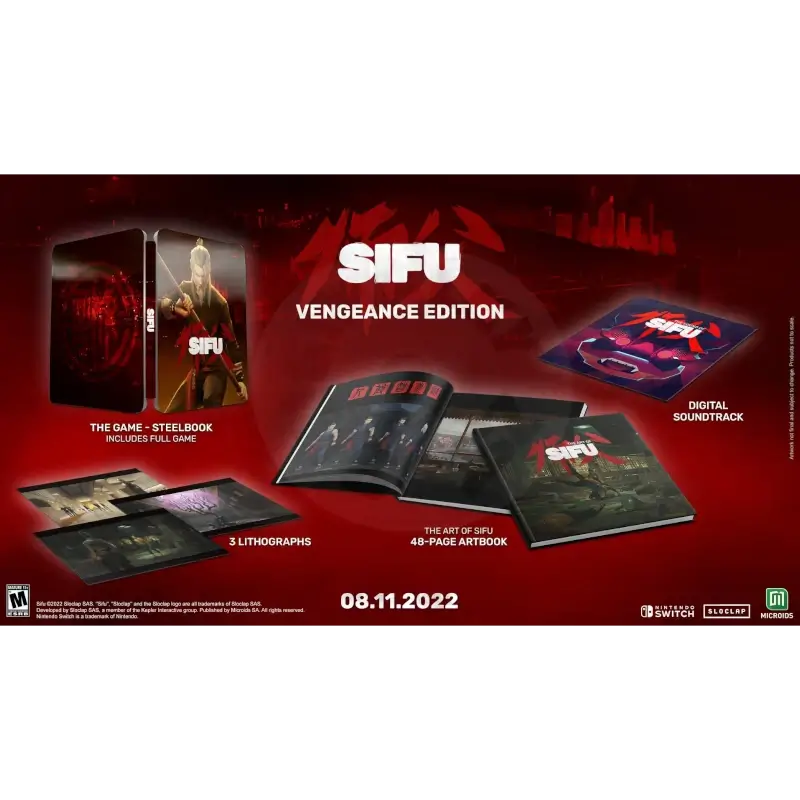 A edição Vengeance Edition inclui conteúdos exclusivos que enriquecem a experiência. Além do jogo base, esta edição oferece um livro de arte repleto de ilustrações impressionantes, a banda sonora oficial, que captura a essência atmosférica e cinematográfica do jogo, e outros itens colecionáveis que celebram a jornada do protagonista e o estilo visual distinto de Sifu. A edição é perfeita para fãs que querem aprofundar-se no mundo do jogo e explorar mais sobre a sua criação.