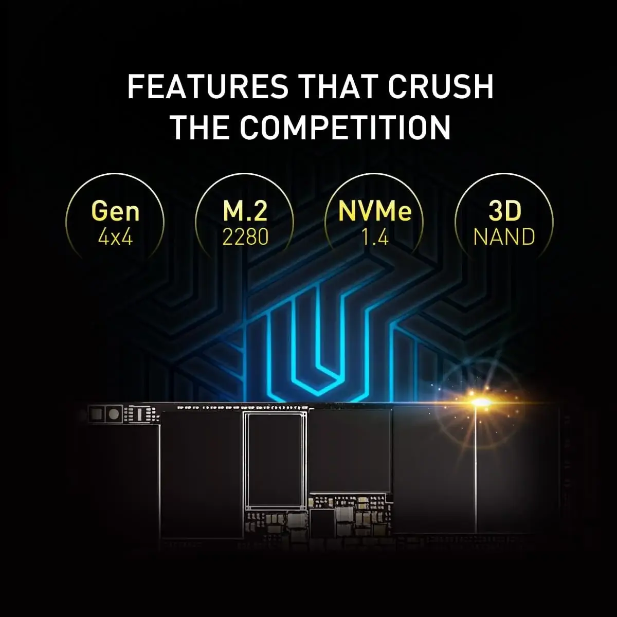 - Interface PCIe Gen 4 x 4 com velocidades de leitura de até 7.300 MB/s e velocidades de gravação de até 6.800 MB/s