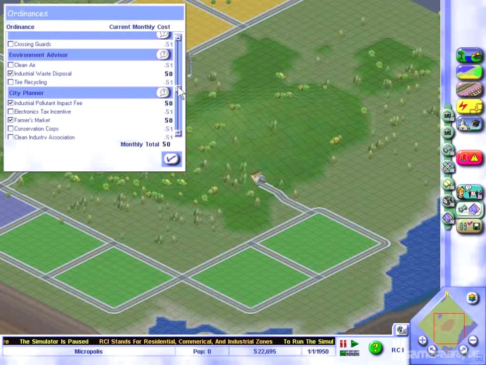 SimCity coloca você como o prefeito de um novo município, com a responsabilidade de construir e manter um lugar onde os cidadãos possam se mudar, trabalhar e ser felizes. A primeira tarefa é colocar itens essenciais, como moradia, transporte, escolas, fábricas e lojas. São 50 tipos destes, permitindo residências de todos os padrões e diversos tipos de comércio. Certifique-se de considerar quais sites são eficazes para quais tarefas. Algumas fontes de energia poluem, outras não, mas são mais caras. Os impostos devem ser aumentados para garantir uma renda e, em seguida, porções alocadas para serviços públicos, como policiamento e estradas. Terremotos, inundações e incêndios são situações de emergência que devem ser tratadas para conter qualquer dano.