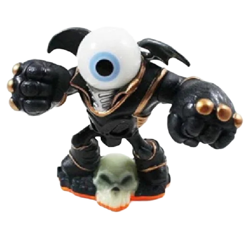 Ao longo da história, houve muitas batalhas épicas, embora nenhuma seja mais bizarra do que a lendária briga entre o gigante sem cabeça e o infame globo ocular voador. Tudo começou com uma competição de encarar, mas com o gigante sem cabeça sem olhos e o globo ocular voador incapaz de piscar, logo se transformou em uma guerra total, enquanto os dois rivais lutavam ferozmente em toda a terra dos mortos-vivos por mais de cem anos! Sem nenhum oponente derrotado, os dois combatentes acabaram percebendo que, se combinassem seus poderes formidáveis, seriam uma força a ser reconhecida. Ao se unirem, o infame globo ocular voador e o gigante sem cabeça ficaram conhecidos como Eye-Brawl, um dos mais poderosos Skylanders já conhecidos.