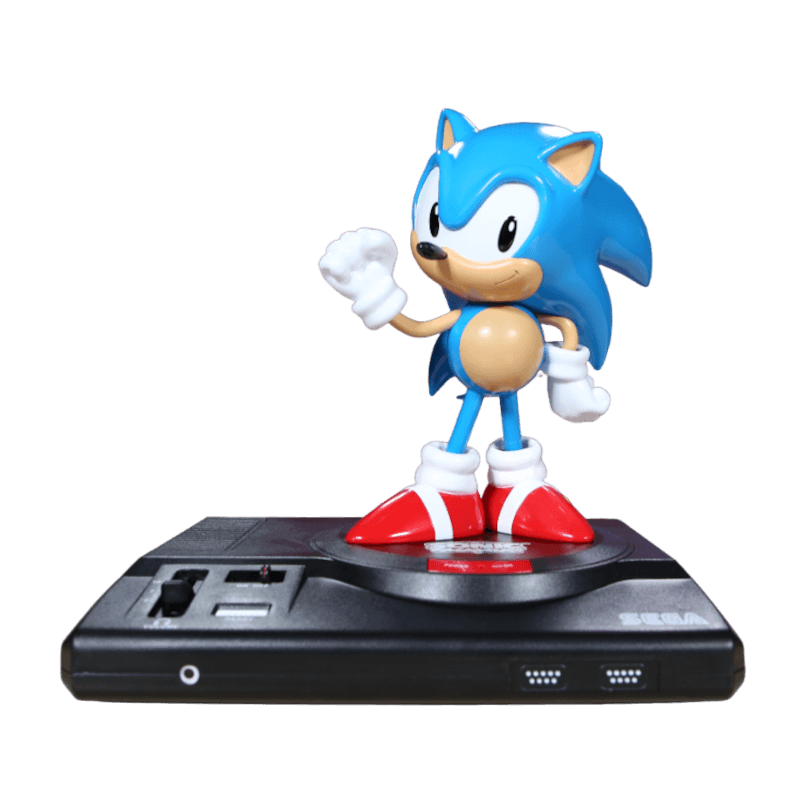 O destaque da coleção é a estátua de 12 polegadas do Sonic clássico. A estátua é feita de resina e é pintada à mão com detalhes incríveis. Ela está posicionada em cima de uma base em forma de console Sega Genesis, que emite o som clássico de inicialização do console ao ser ligada.