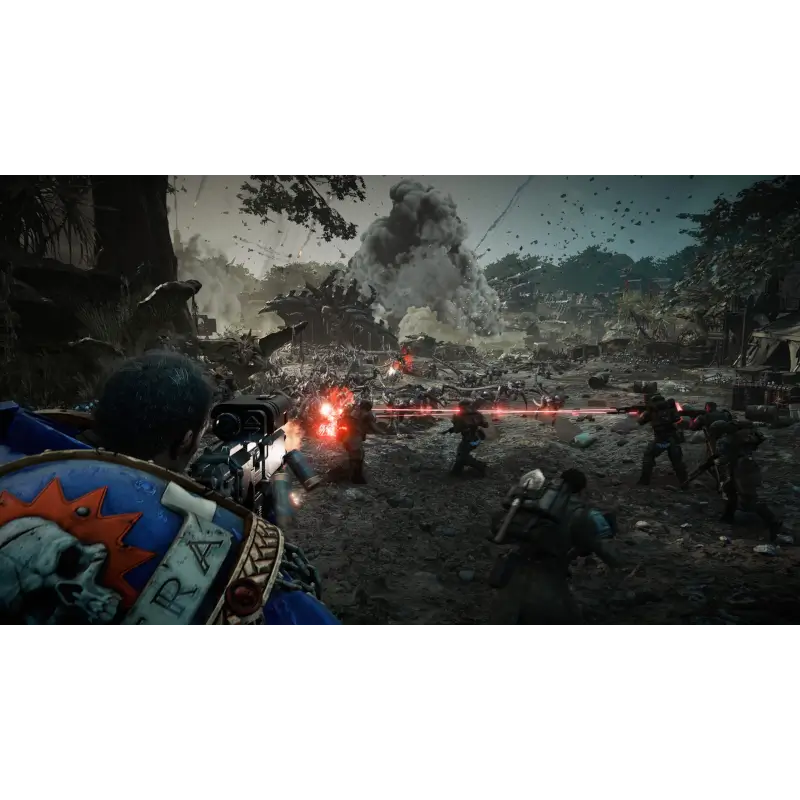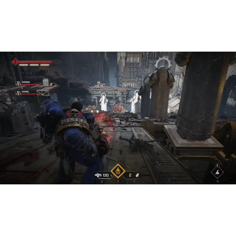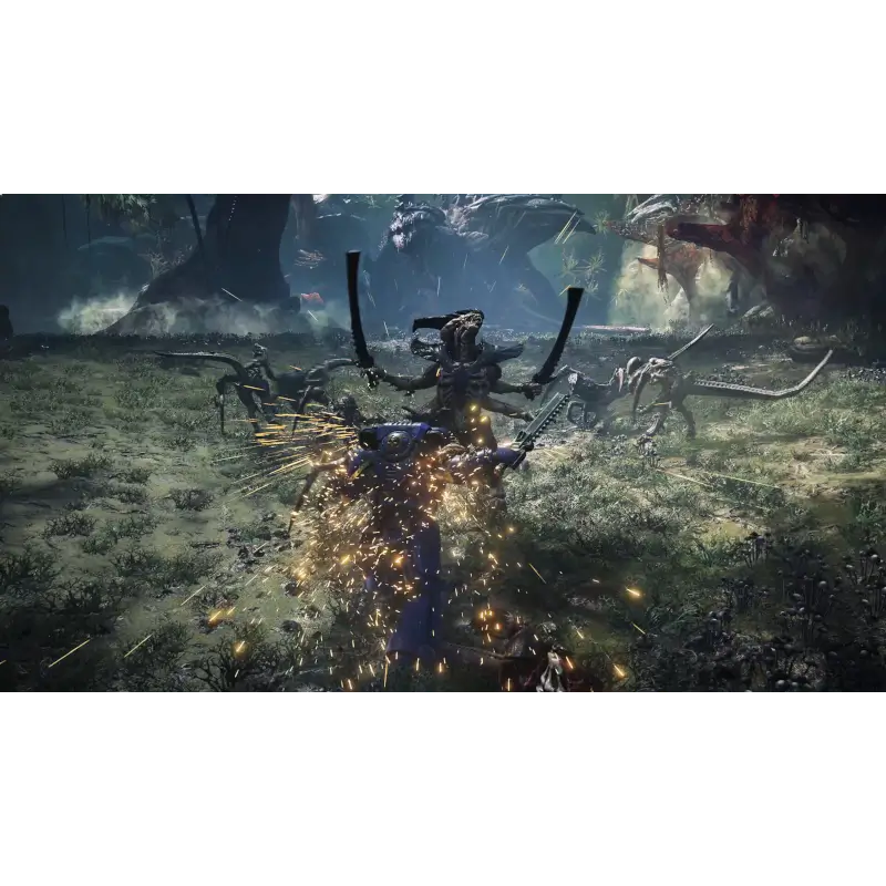 O combate, de terceira pessoa, mescla fogo de armas de longo alcance com corpo a corpo visceral. Enfrente hordas imensas de extraterrestres com a combinação letal de rifles-bolters, flamethrowers ou até mesmo snipers — tudo alternando com brutalidade, seja com a espada de energia ou cadeias-sword. Executar inimigos regenera sua armadura enquanto a saúde pode ser restaurada usando Stimm ou eliminando adversários com inovações que encorajam um estilo de jogo agressivo.