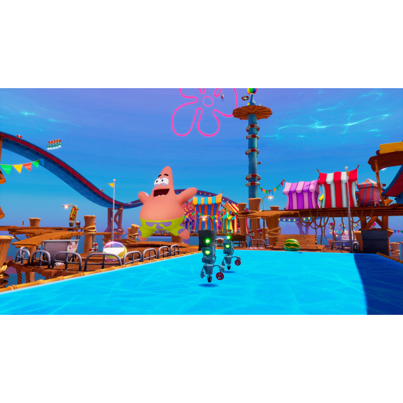 - Personagens Jogáveis: Os jogadores podem alternar entre SpongeBob, Patrick e Sandy, cada um com habilidades únicas. SpongeBob pode usar bolhas para atacar, Patrick pode carregar objetos e arremessá-los, e Sandy pode planar usando seu laço.