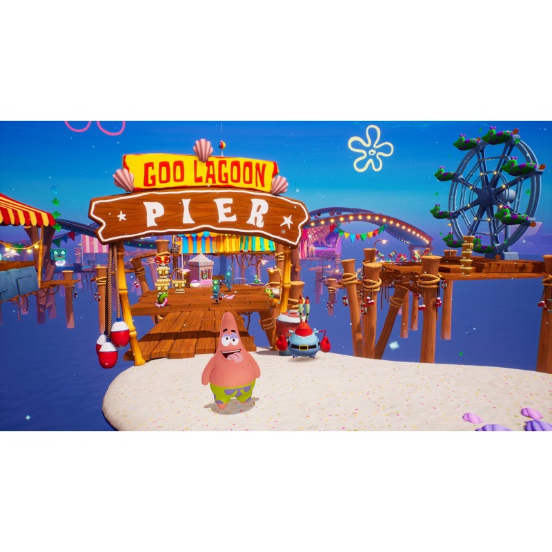 - Personagens Jogáveis: Os jogadores podem alternar entre SpongeBob, Patrick e Sandy, cada um com habilidades únicas. SpongeBob pode usar bolhas para atacar, Patrick pode carregar objetos e arremessá-los, e Sandy pode planar usando seu laço.