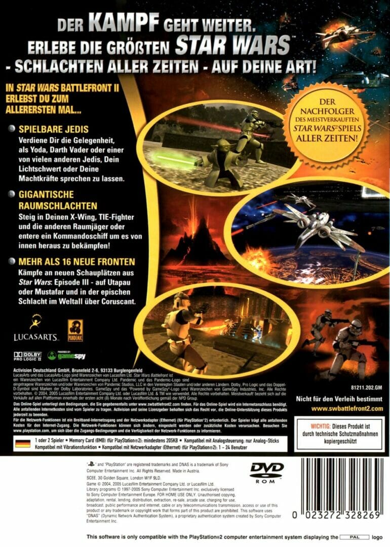 Juntamente com um sortido actualizado de mapas multi-jogador baseados na Saga Guerra das Estrelas, incluindo o Episódio III: Vingança dos Sith, tem agora a oportunidade de lutar como alguns dos maiores heróis, incluindo a família Skywalker, Darth Vader, Yoda, o próprio Imperador e a Princesa Leia, entre outros. Uma campanha alargada de jogador único tem-no a lutar como a 501ª Legião de tropas de Vader, lutando nas Guerras dos Clones como a corrente subterrânea do mal, em breve conhecida como Império, toma o seu lugar na Galáxia.