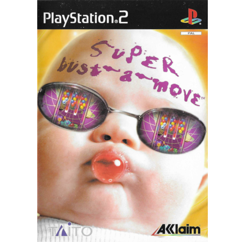 Super Bust-a-Move é um jogo de quebra-cabeça viciante que foi aprimorado para o PlayStation2. A jogabilidade é simples: os jogadores disparam bolhas coloridas em um teto de mais bolhas – quando três ou mais bolhas da mesma cor se tocam, elas estouram e desaparecem. Esta versão atualizou os gráficos de alta resolução, milhares de novas placas de quebra-cabeça e novos personagens e animações. Os veteranos da série vão se deliciar com todos os novos segredos, como pequenas bolhas complicadas, prisioneiros de bolhas presos e personagens ocultos. Outros novos recursos incluem paredes de correias transportadoras e fundos variáveis. Os modos de jogo clássico, normal e de treinamento são um precursor do verdadeiro modo de batalha – no qual os jogadores brigam com um amigo em tela dividida.