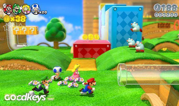 O jogo é para um ou vários jogadores, cooperativo ou free-for-all, até 4 jogadores. A lista de personagens disponíveis consiste em Mario, Luigi, Peach, Toad. Cada um deles tem estatísticas diferentes em termos de tempo necessário para saltar, correr a velocidade, saltar em altura: tradicionalmente, Luigi pode alcançar por saltar áreas que os outros não conseguem, Toad é o mais rápido de todos mas mal consegue saltar, Peach é bastante lento, mas capaz de pairar a meio do ar deslizando sobre as aberturas que param os outros, Mario é médio em todas as habilidades. Algumas tarefas podem ser realizadas com mais facilidade, ou apenas, por um personagem que ombreia outro.