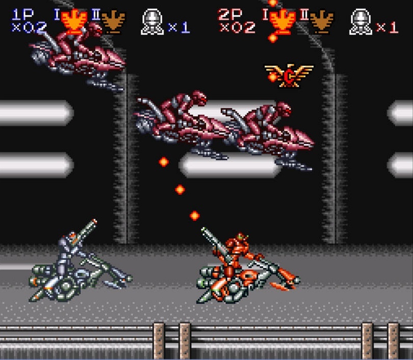 Em alguns casos, o protagonista também participará em mudanças de motocicleta. Duas fases têm uma visão de cima para baixo e são jogadas de forma diferente dos níveis de rolagem lateral, com mais liberdade de exploração e a necessidade de completar objectivos de missão em vez de simplesmente avançar numa direcção e matar todos os inimigos.