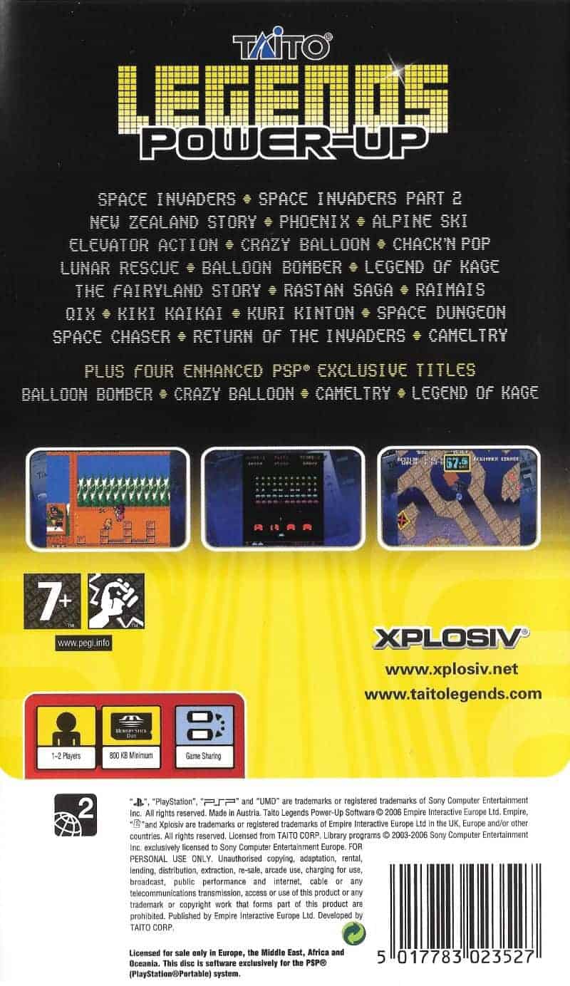 A série de compilações de Taito Legends da Empire Interactive passou para a mão na Europa e nos EUA com Taito Legends Power-Up. É ligeiramente diferente do Taito’s Taito Memories Pocket, que só foi lançado no Japão. Mais notável é a inclusão de Space Invaders e Space Invaders Parte 2 e a ausência de Rainbow Islands Extra.