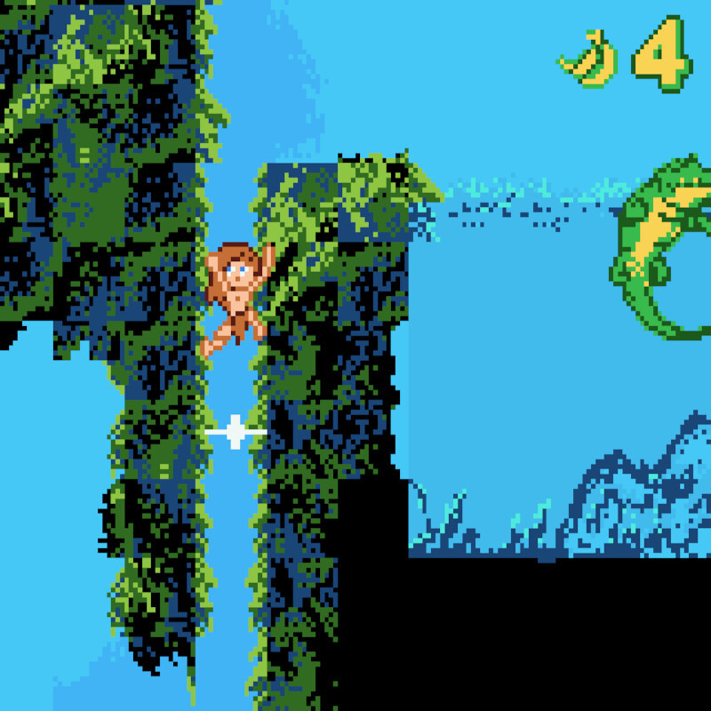 Os gráficos são em 2D, com cores vivas e sprites bem detalhados para o Game Boy Color. A jogabilidade envolve pular entre plataformas, balançar em cipós, desviar de inimigos e derrotar ameaças como animais selvagens e caçadores. Além disso, há colecionáveis como frutas e tokens que aumentam a pontuação.