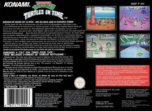 TEENAGE MUTANT HERO TURTLES IV TURTLES IN TIME SN (S/CAIXA, S/MANUAIS)