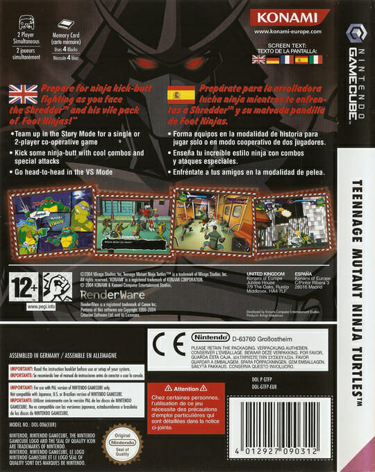 Com base no mais recente desenho animado FOX com o mesmo nome, Teenage Mutant Ninja Turtles apresenta Leonardo, Raphael, Michelangelo e Donatello como ninjas verdes. Vivendo nos esgotos, elas rastejam quando ninguém procura lutar pela verdade, justiça e outra fatia de pizza. Lutando contra a face pública do inventor Baxter Stockman e a figura mais sombria de Shredder e do seu Clã Foot, estas Tartarugas Ninja terão a oportunidade de fazer os seus adversários comerem conchas!
