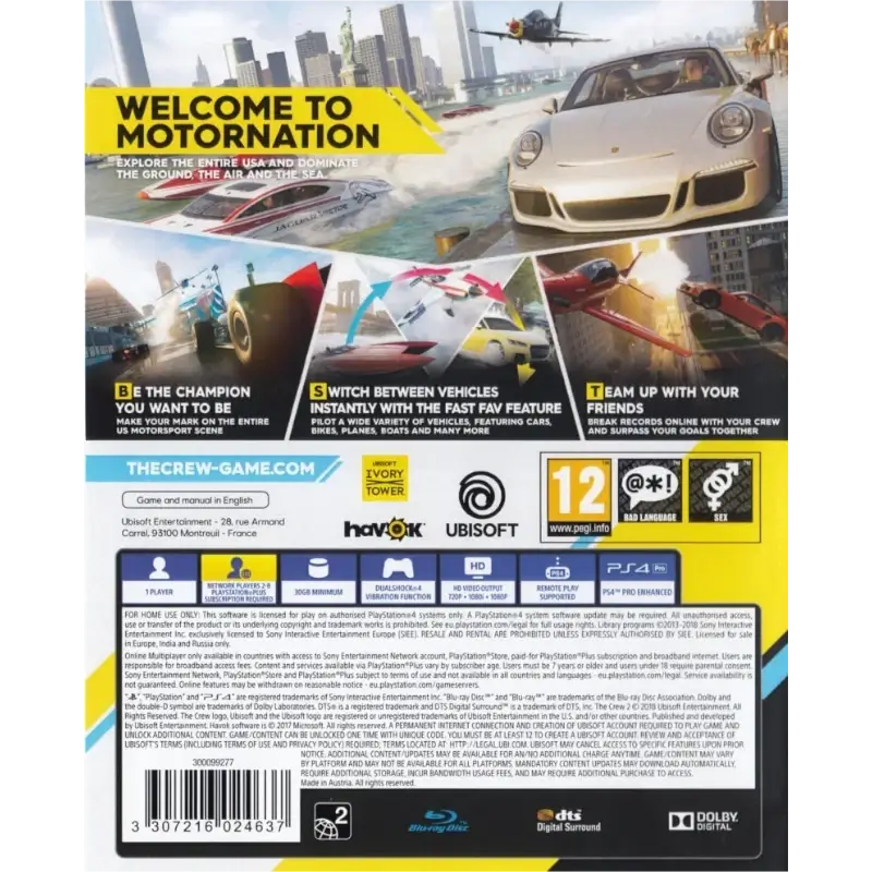 Em The Crew 2 para PlayStation 4, os jogadores podem conduzir uma grande variedade de veículos, incluindo carros, motos, barcos e aviões, alternando entre eles em tempo real durante as corridas. O jogo apresenta diferentes disciplinas, como corridas de rua, off-road, freestyle e competições aéreas, garantindo diversidade e desafios constantes. A progressão permite desbloquear veículos, personalizar performances e melhorar o visual conforme o estilo de jogo.