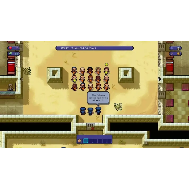 Experimente a vida prisional simulada num ambiente de arte pixel.