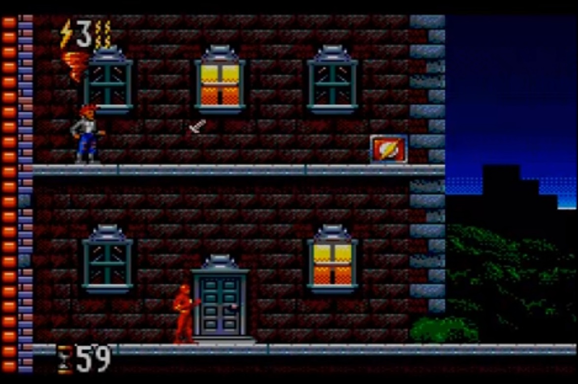 O Flash é um jogo de plataforma de rolagem lateral protagonizado pelo herói de banda desenhada homónimo de D.C. O jogo é dividido em seis rounds, cada round tem duas fases e uma luta de chefes. Dentro de cada etapa, o Flash deve chegar à saída antes que o tempo limite se esgote, embora a saída deva primeiro ser desbloqueada através da activação de um interruptor.