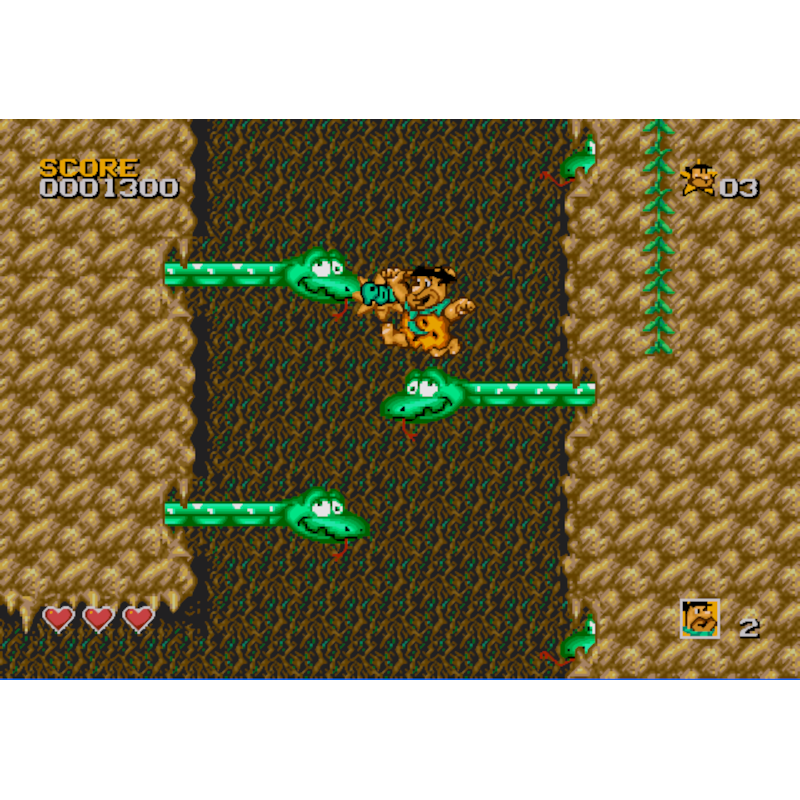 Este é um jogo de plataforma baseado na famosa série Flintstones. O jogo apresenta muitos personagens originais dos Flintstones, como Fred, Wilma, Barney e outros. Em vez dos habituais tipos de enredo “salvar a princesa” ou “libertar o mundo”, “Os Flintstones” baseia-se principalmente em pequenas missões: Fred tem de recuperar um item perdido, etc. No final de cada nível, há uma batalha de chefe. A jogabilidade envolve principalmente pular e acertar os inimigos na cabeça com um porrete. A saúde é medida por corações. Durante o jogo, Fred encontrará muitos itens úteis, incluindo alguns que aumentarão seu nível de saúde.