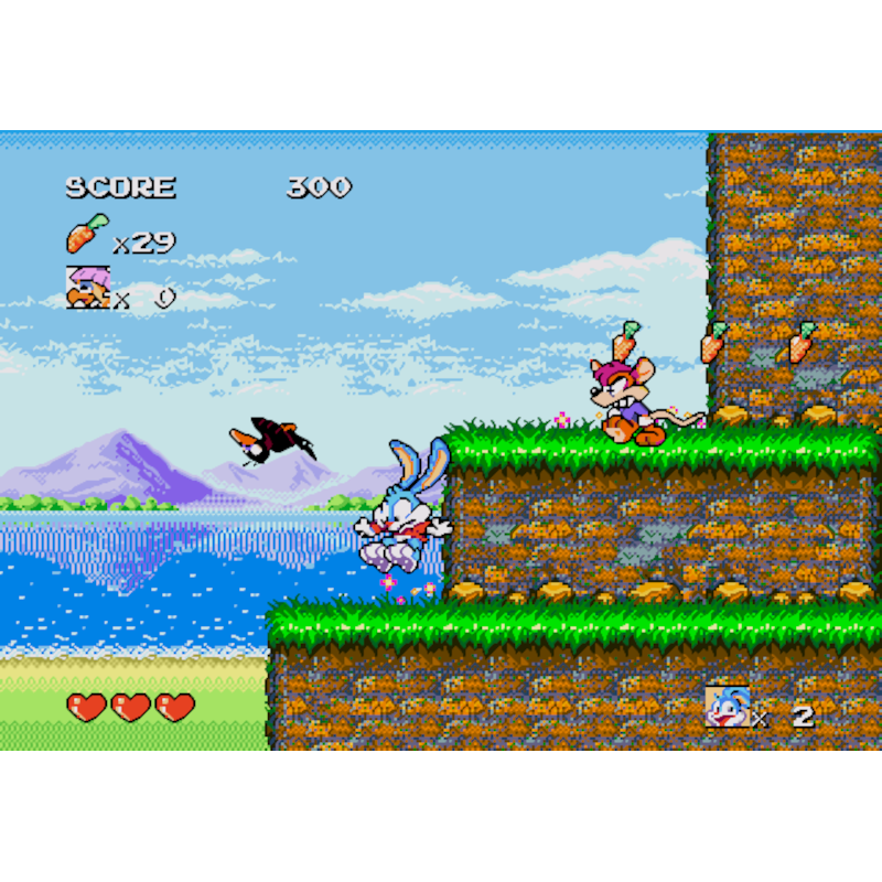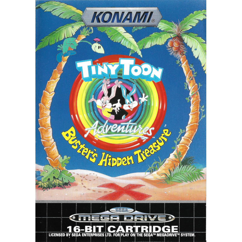 Tiny Toon Adventures Busters Hidden Treasure MD! Enquanto limpa a Acme Looniversity, Buster descobre um mapa que leva a um tesouro secreto! Mas Montana Max rouba o mapa e vai atrás do tesouro sozinho. Ele também faz o Dr. Gene Splicer fazer uma lavagem cerebral na maioria dos amigos de Buster e sequestra o resto deles! Buster precisa recuperar seu mapa, seu tesouro e salvar a todos enquanto faz isso!