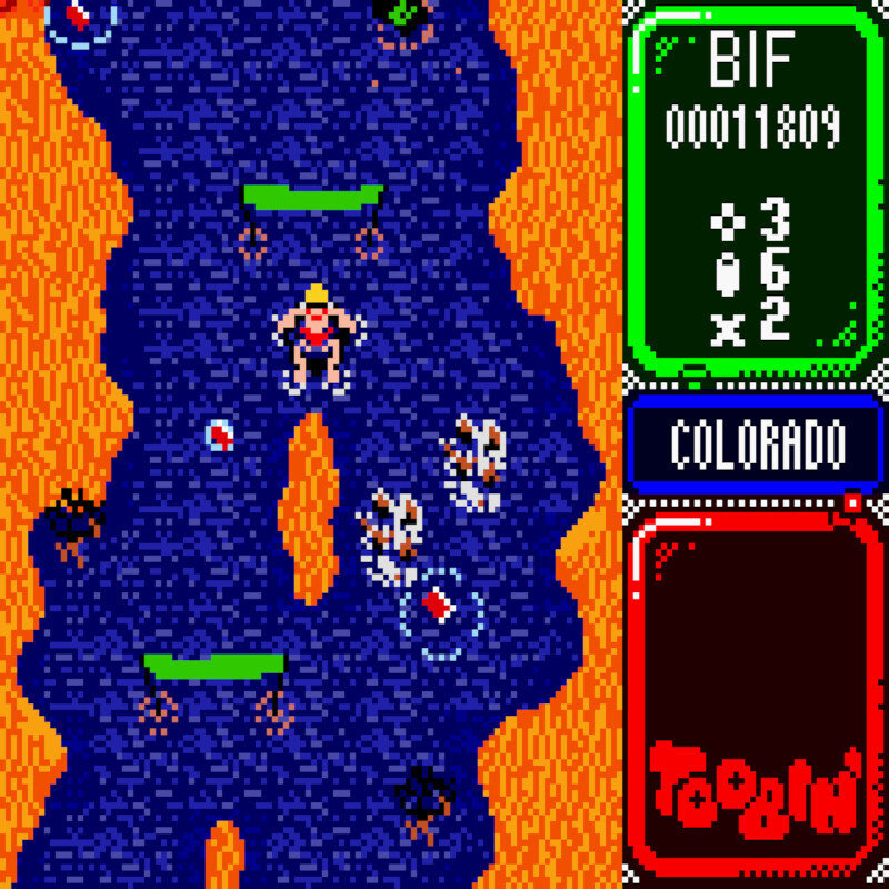 No jogo Toobin GBC, você controla um personagem que desce rios em uma boia, em um estilo de corrida aquática. O objetivo é desviar de obstáculos, como troncos, crocodilos e outros perigos naturais, enquanto coleta power-ups e passa por checkpoints.