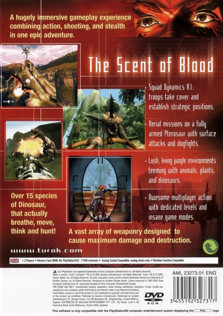 In this prequel to the previous Turok games, you are Tal’Set, the saviour of natives of the River Village in the Lost Lands, who must confront the evil Lord Tyrannus, leader of the reptilian hordes. Tyrannus is bent on a “Holy Mission” to purify the Lost Land through slaughter and misery.