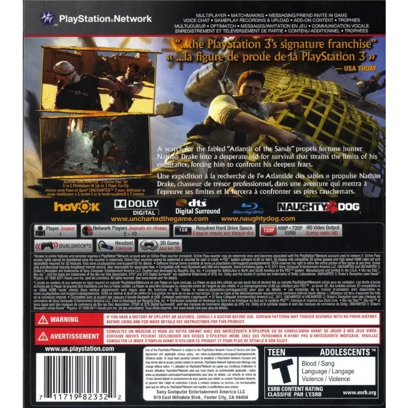 Além da ação, UNCHARTED 3: DRAKE’S DECEPTION – PS3 apresenta gráficos impressionantes para a PS3, animações fluidas, efeitos sonoros realistas e uma narrativa envolvente que mistura suspense, humor e momentos emocionantes. A trilha sonora épica intensifica cada cena, tornando a aventura memorável do início ao fim. Ideal para fãs de ação, exploração e storytelling interativo, UNCHARTED 3: DRAKE’S DECEPTION é um título essencial para qualquer jogador que queira horas de diversão, desafios estratégicos e uma experiência cinematográfica única na PS3.