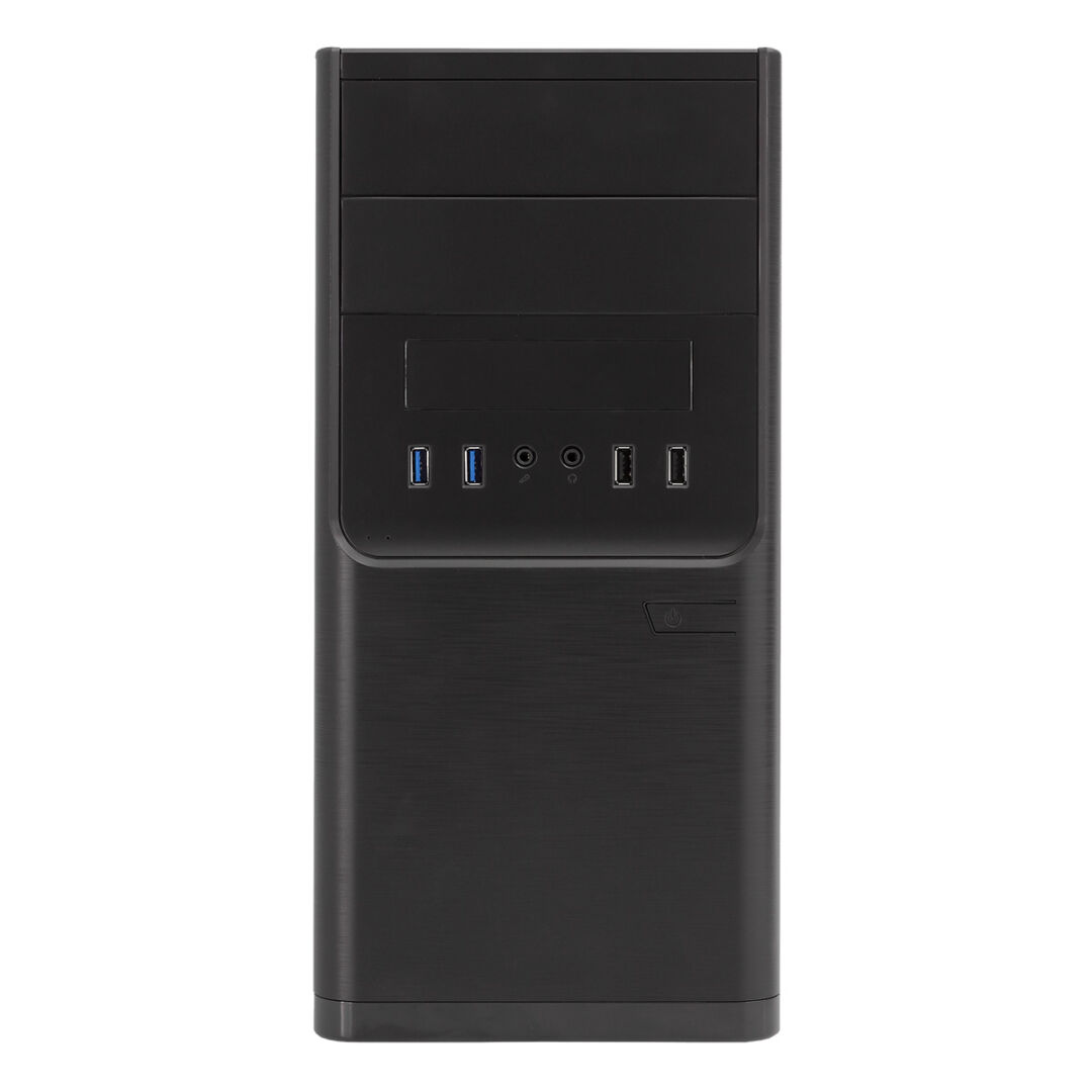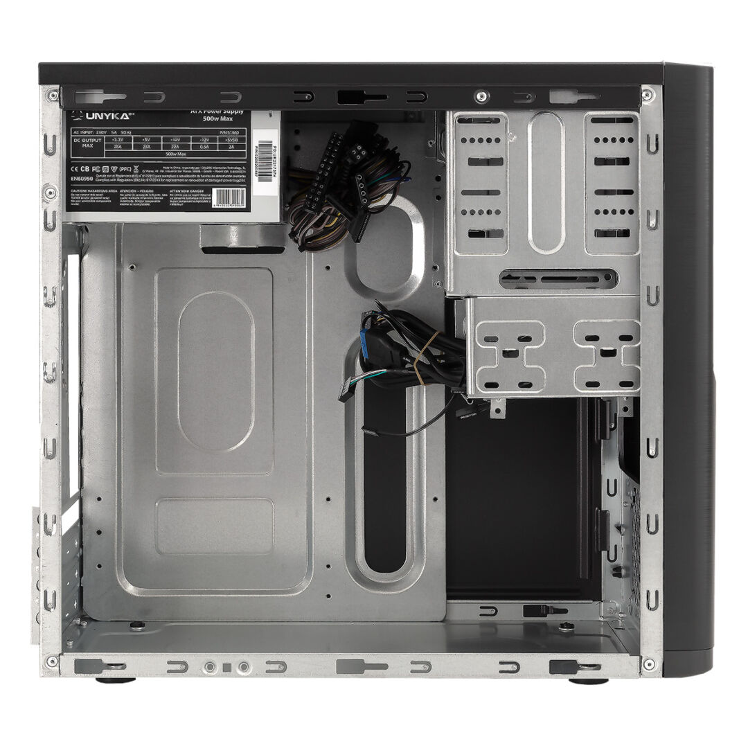 – Conectividade segura: 2x USB 2.0 + 2x USB 3.0. – Botão liga/desliga integrado na frente. – Inclui fonte de alimentação ATX de 500 W.