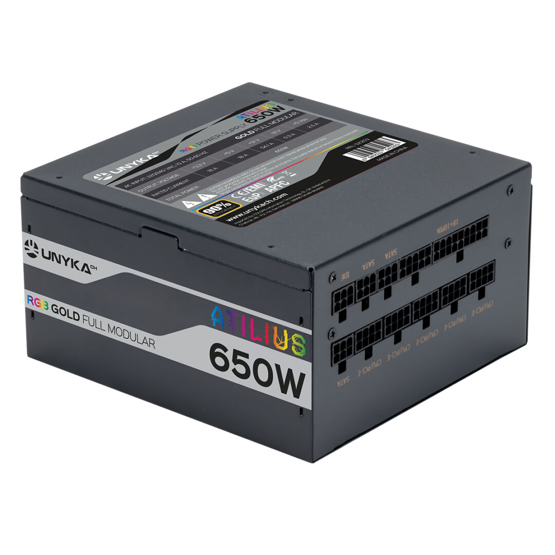 UNYKach expande sua série ATILIUS para RGB com 90% de eficiência GOLD totalmente modular, completo com fontes de alimentação premium de 650 watts. Eficiência verificada de 90%, excelente ventoinha RGB de 12 cm que permite desligar a luz caso não precise, capacitores taiwaneses de alta qualidade e cabos modulares completos. Esses componentes colocam esses produtos no topo das fontes de alimentação UNYKach.