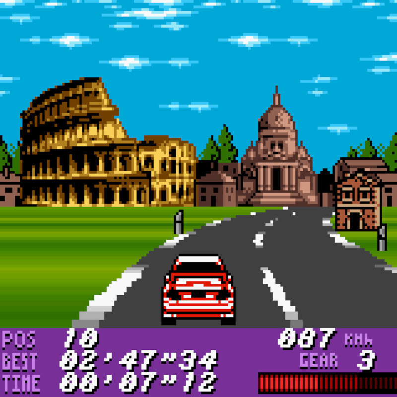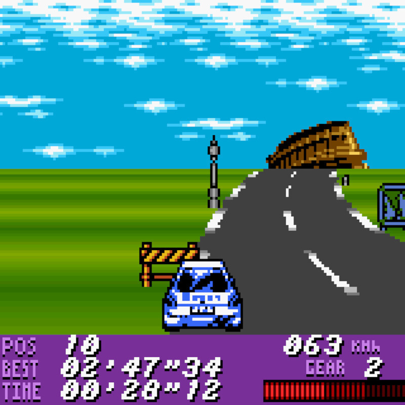 O jogo apresenta gráficos coloridos e detalhados, levando em consideração as capacidades do console, com carros e pistas bem representados para a época. As corridas ocorrem em diversas localidades ao redor do mundo, cada uma com suas próprias características de terreno, como neve, asfalto e lama, exigindo que o jogador adapte sua dirigibilidade.