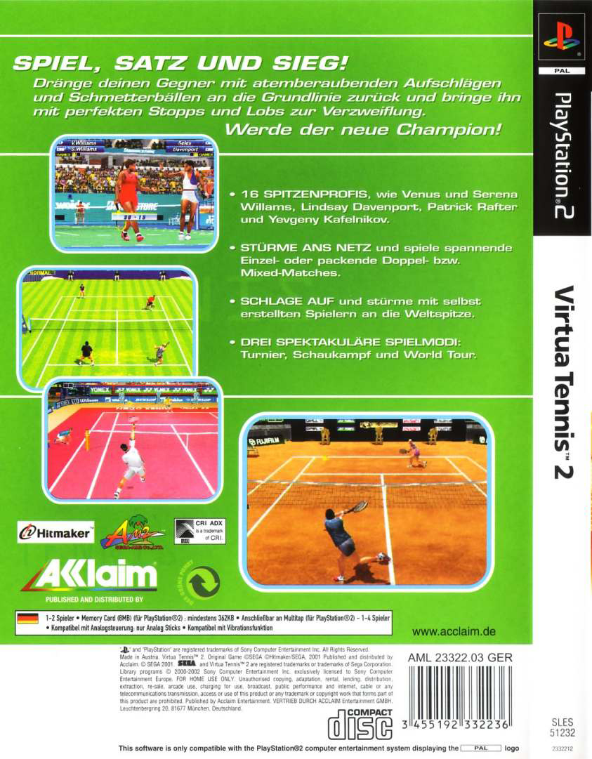 Os gráficos dos jogos foram melhorados, e há uma lista maior de jogadores por onde escolher. A adição mais notável é a das jogadoras, como Monica Seles e Venus e Serena Williams. No entanto, não se pode jogar como um macho contra uma fêmea.