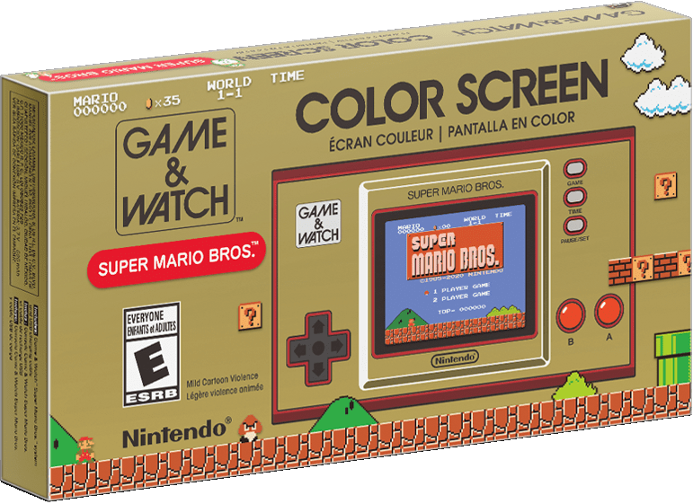 Ecrã a cores de jogos e relógios: Super Mario Bros. é uma versão especial de um computador de mão tradicional dedicado a jogos e relógios em comemoração do 35.º aniversário de Super Mario Bros..
