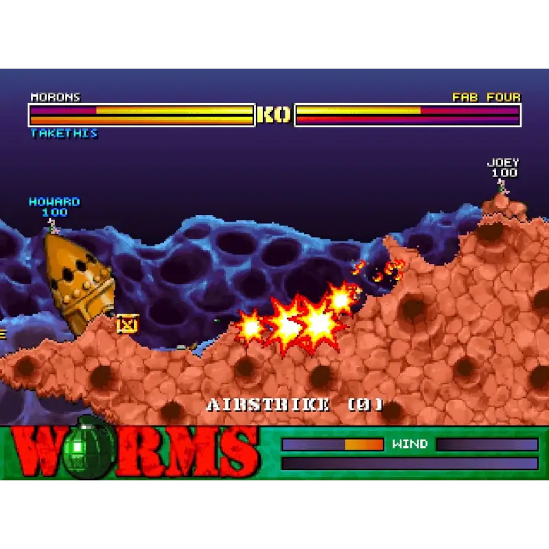 Há muitas armas disponíveis – as normais como as bazucas (que são afectadas pelo vento (aleatório) e pela gravidade) e granadas. As outras incluem um Soco de Fogo, dinamite, ataques aéreos, e utilidades como cordas e vigas.
