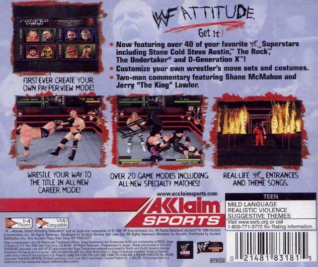 WWF Attitude é um seguimento da WWF War Zone. A jogabilidade é semelhante à do seu predecessor, incluindo uma variedade de modos de jogo e jogos de especialidade, tais como Royal Rumble, Survivor Series, jogos Tornado, e outros. O modo Create-A-Wrestler foi ligeiramente melhorado, acrescentando comentários e cantos de multidão em resposta aos apelidos das superestrelas. O modo Challenge do jogo anterior é substituído pelo modo Career, permitindo ao lutador controlado pelo jogador participar em espectáculos domésticos, ganhando partidas para se tornar um dos melhores do prestigioso Raw show, eventos pay-per-view, e eventualmente competir pelo título. Foram também acrescentados alguns novos tipos de jogos e entradas de super-estrelas de Outono.