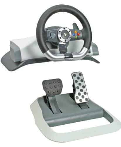 O Xbox 360 Wireless Racing Wheel foi desenvolvido pela Microsoft para o Xbox 360 e foi apresentado na E3 2006. Lançado em novembro de 2006, o controlador de volante com feedback de força inclui os botões padrão do gamepad junto com o acelerador montado no chão e pedais de freio. Embora o volante seja capaz de funcionar verdadeiramente sem fio com uma bateria padrão do Xbox 360 (recarregável ou duas baterias AA), o uso dos recursos de feedback de força e resistência ativa requer um adaptador CA externo.