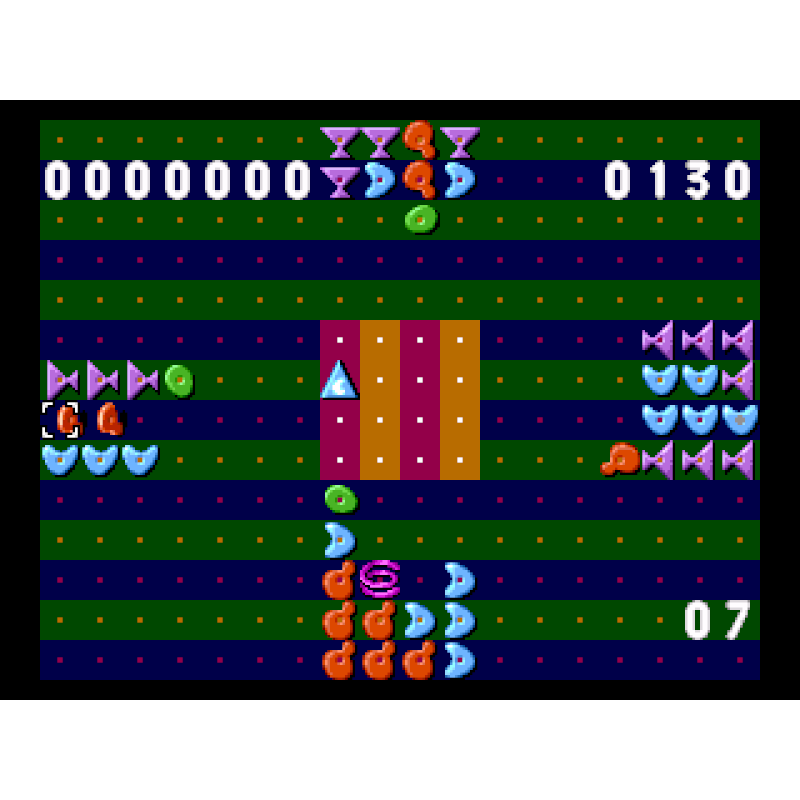 Zoop é um jogo de quebra-cabeça de ritmo acelerado no qual o jogador elimina formas coloridas que se aproximam de seu alter ego, outra forma colorida, antes de chegar ao topo, algo semelhante ao Tetris.